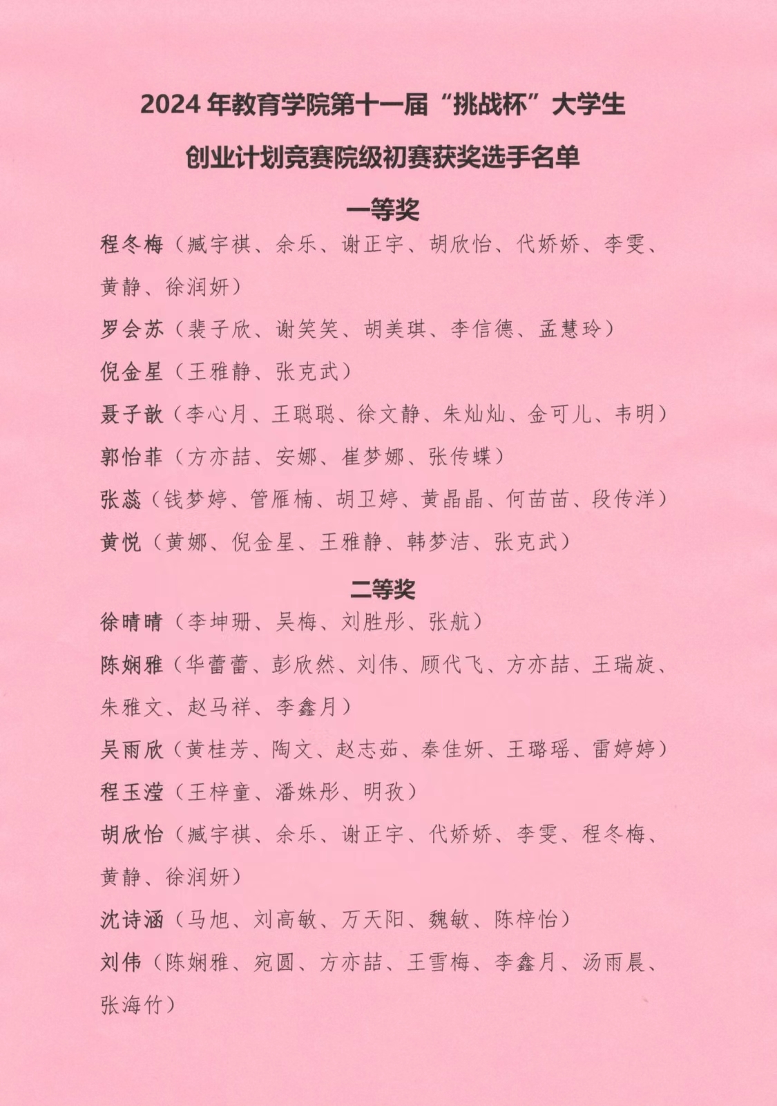 2024年pa电子官方网站第十一届“挑战杯”大学生创业计划竞赛院级初赛获奖选手名单