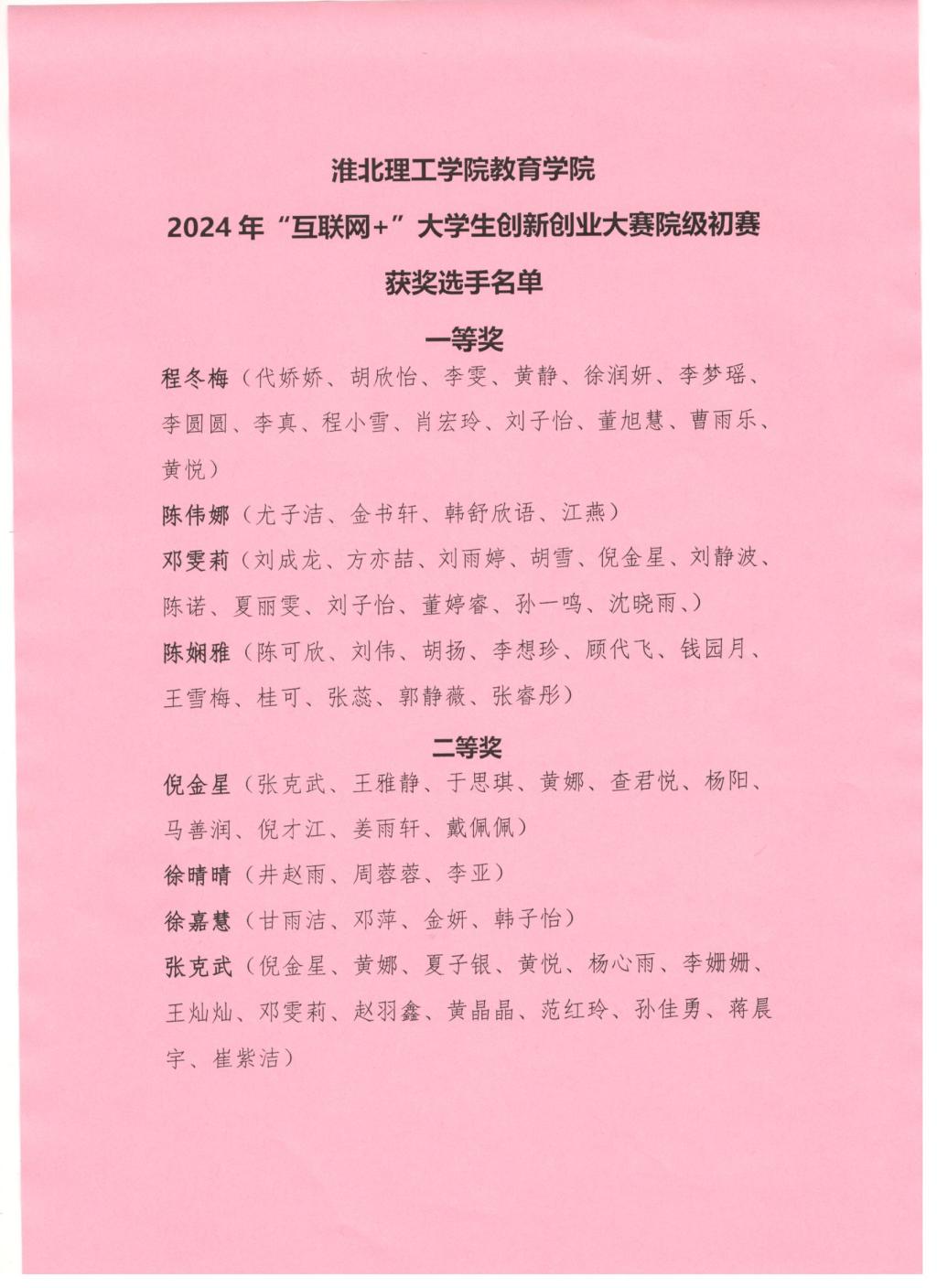 pa电子官方网站2024年“互联网+”大学生创新创业大赛院级初赛获奖选手名单