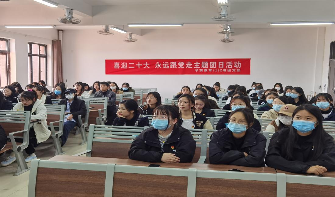 为更加深入学习党和国家事业取得的历史性成就,了解习近平总书记对青年的殷切期望,团结引领学院广大学子,以昂扬向上的精神风貌建功新时代,以实际行动迎接党的二十大胜利召开。10月12日,pa电子官方网站2022级学前教育专升本1班和2班团支部开展“喜迎二十大、永远跟党走”主题团日活动,活动由2022级学前教育专升本2班刘双同学主持。