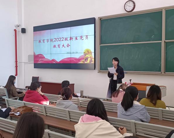 2022年10月19日下午,pa电子官方网站在1教121教室召开新生党员教育大会。学院分管副书记孟向红、2022级全体辅导员以及全体新生党员参加了会议,会议由学生支部书记任若晨主持。