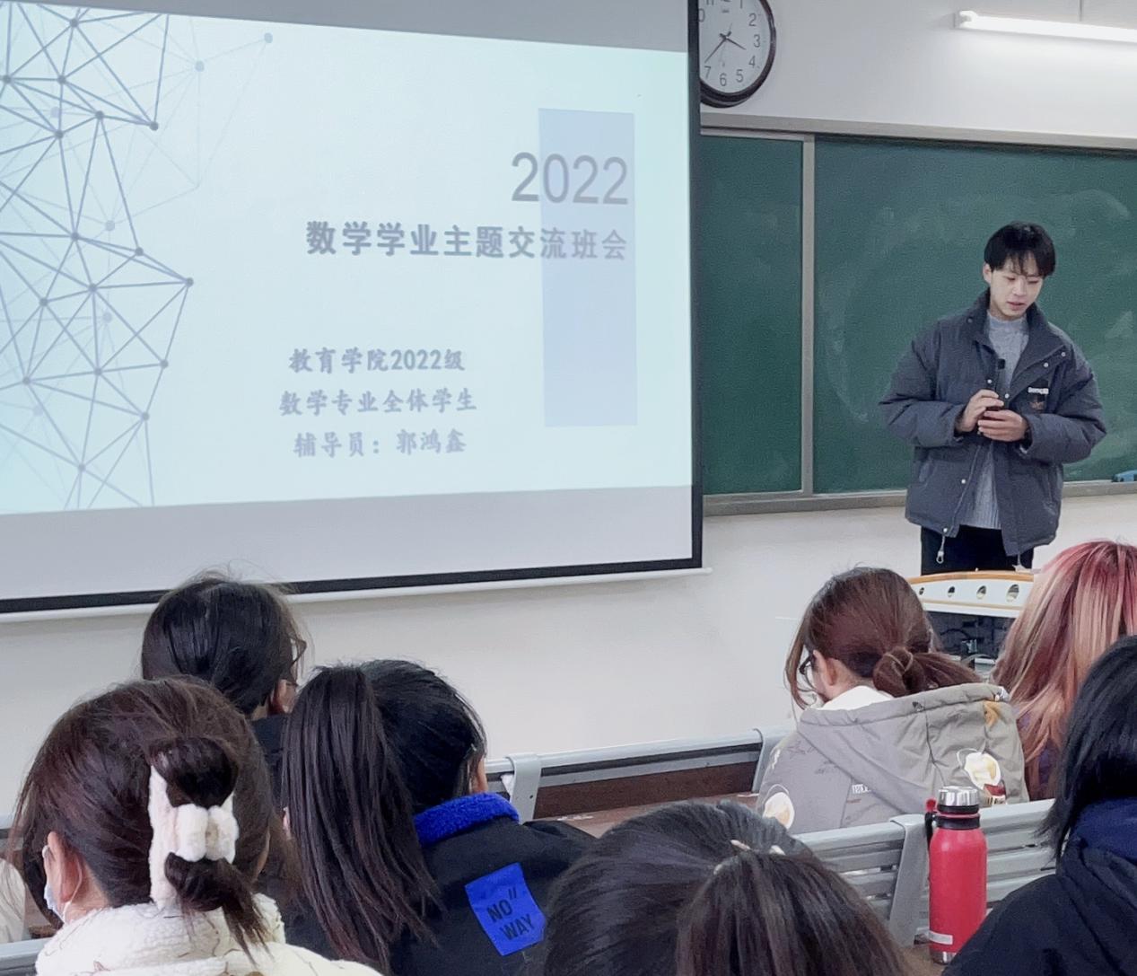 为激发同学们的学习兴趣,更加刻苦地钻研专业知识,坚定自己的职业方向,pa电子官方网站2022级数学与应用数学和汉语言文学专业共约400名学生于11月下旬分别在1号教学楼520、514等教室分别召开“聚焦学业主题班会”,会议分别由所带专业辅导员郭鸿鑫、李应华主持,他们针对各自专业特点向同学们讲解了关于教师资格证考试和期末巩固复习的相关内容。
