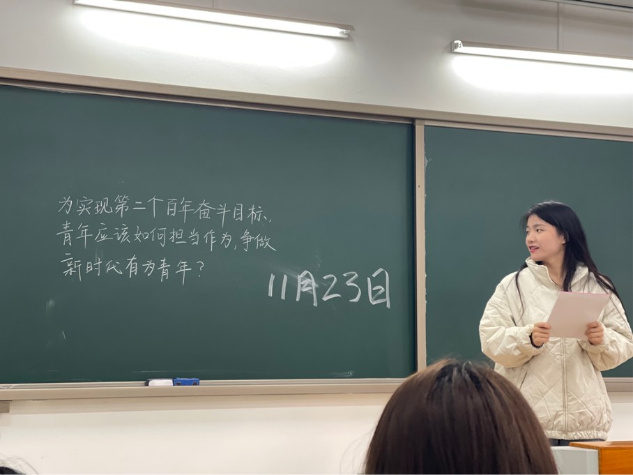 针对第四专题,第6小组组员杨梦悦同学说到:“作为青年的我们,要有不怕苦的意志品质,拿出能吃苦的闯劲干劲,要争当先锋、带头实干,同时要胸怀“国之大者”,练就过硬本领,担当使命任务,争做伟大事业的主力军。”第2小组组长陆露同学说到:“青年处于学习的黄金时期,一定要努力学习科学文化知识,求真好问、练真本领,为中国人民谋幸福,为中华民族谋复兴。”