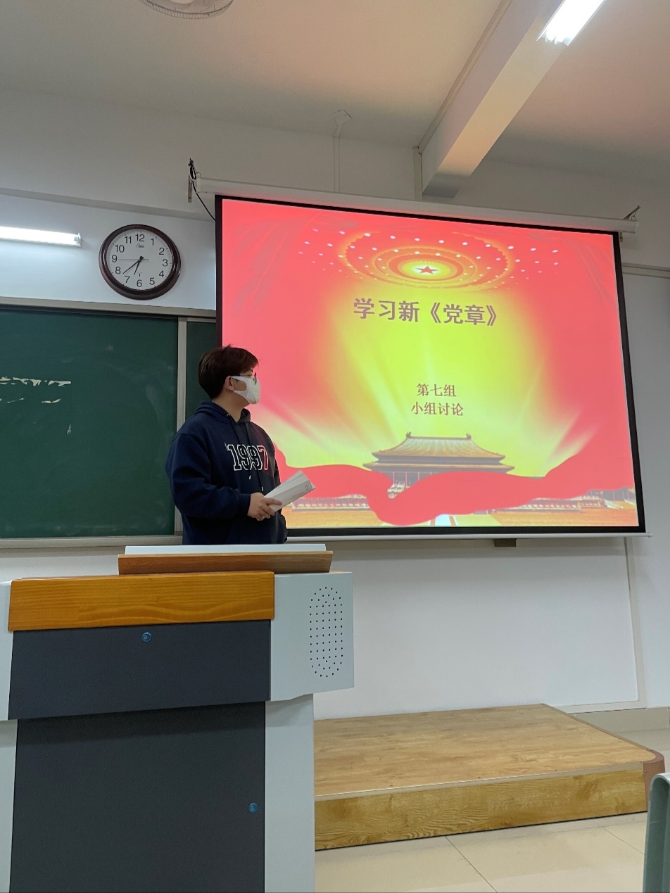 针对第三专题,第12小组组员孟乐同学说到:“学习新党章后,我认识到作为一名入党积极分子,一定要时刻以一名党员的标准来衡量自己,以一名党员的条件来严格要求自己,在同学当中应处处体现出先锋模范作用,只有这样才能有资格加入这个光荣而先进的组织。”