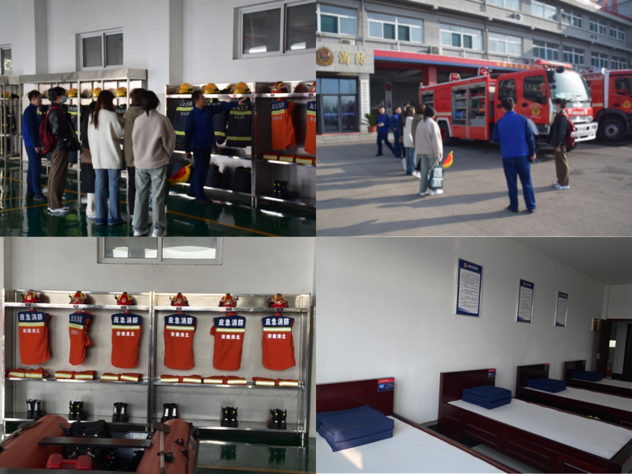 寻访中,突然一声警铃响起,消防员们立刻放下手中所有事务,以最快的速度奔向消防车库,穿上厚重的消防服,直接跑向消防车。眼前的场景带给同学们极大震撼,对消防员更加肃然起敬。