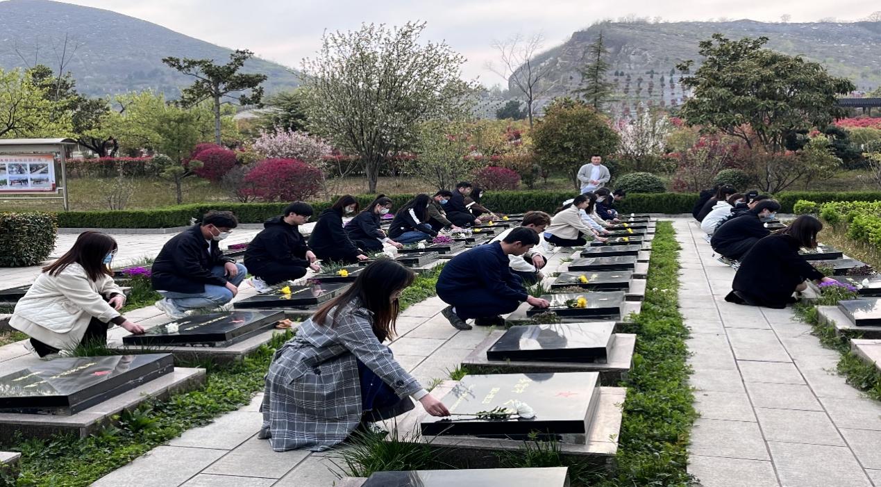 下午4:20分,所有参加扫墓的同志在学院门口集合,步行到达杜集区革命烈士陵园,在党支部书记刘畅、支部委员李应华和张颖颖的带领下,同学们有序参观了革命烈士陵墓,认真聆听了讲解员讲解烈士们英勇无畏的斗争事迹,深切地感受到如今和平生活的来之不易,精神上经受了一次深刻的洗礼。同学们在庄严肃穆的烈士墓碑前向革命烈士鞠躬默哀,寄托对烈士的哀思。学生党员代表谷驰驰为烈士擦拭墓碑。