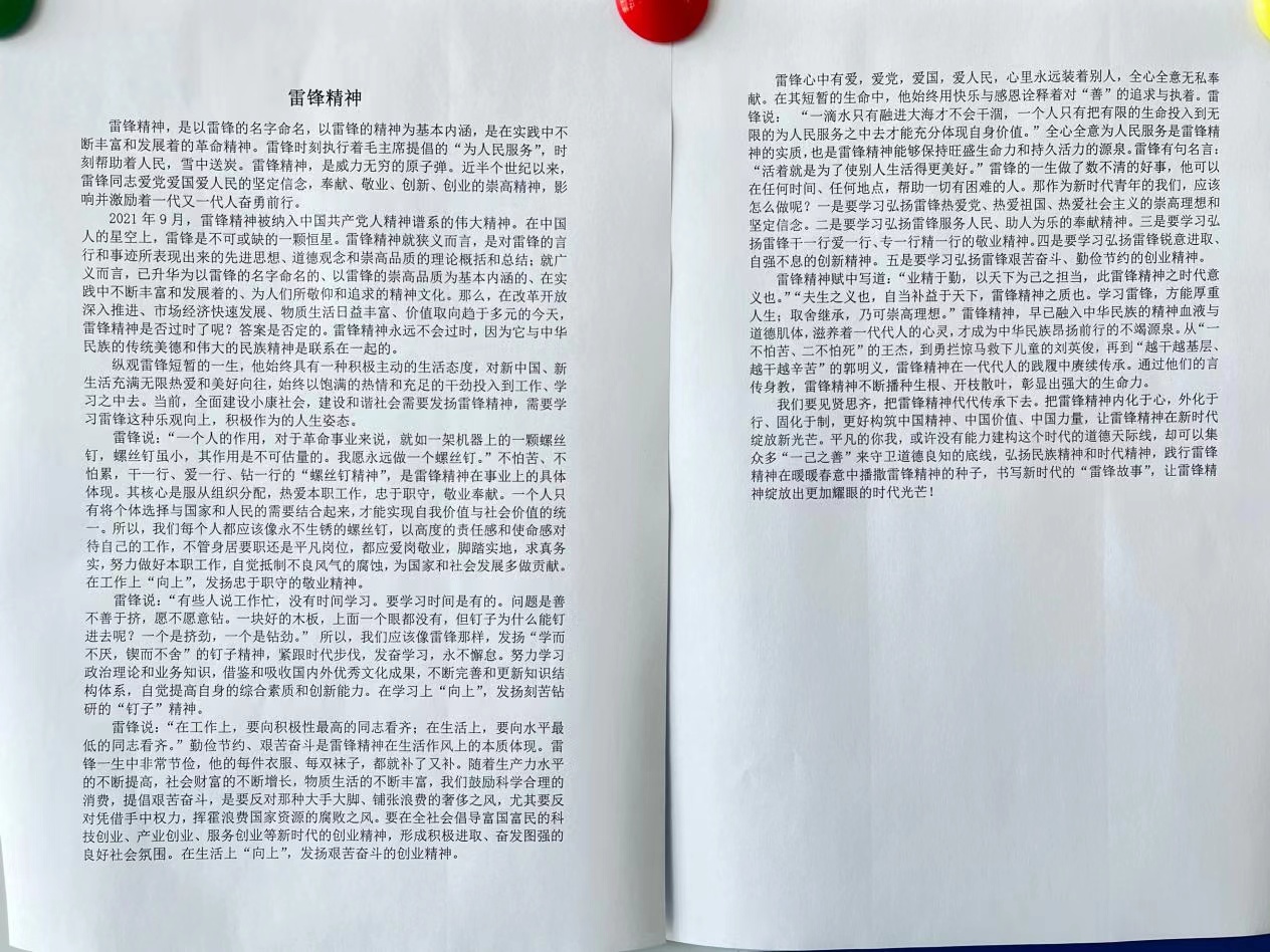 为弘扬雷锋精神,致敬时代先锋,扎实推进学生的思想道德教育,促进学生文明素养的提高。pa电子官方网站在“学雷锋活动月”中组织开展了手抄报比赛及征文活动活动。同学们积极响应,踊跃参与,以自己创作的作品展现对雷锋精神的学习体会。