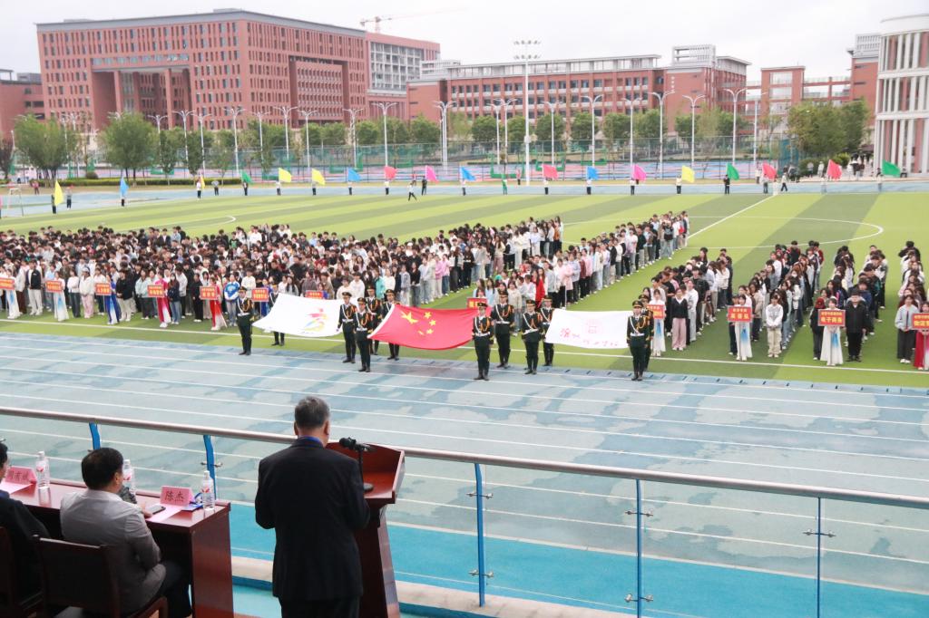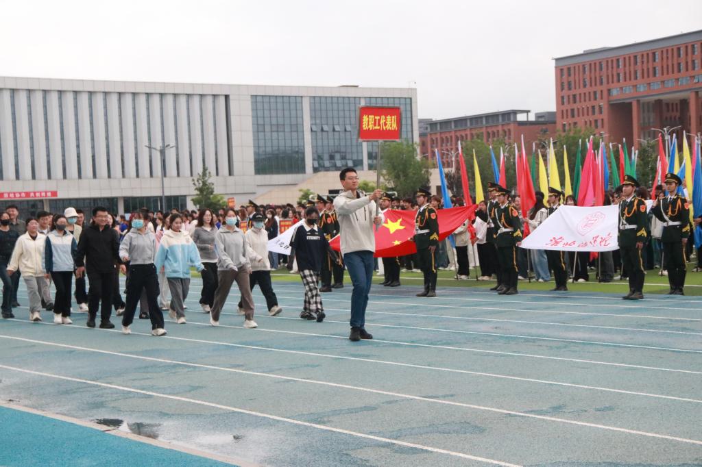 随后,校旗队、彩旗队、裁判员队以及学校各参赛队伍依次有序入场。各代表队精神抖擞、意气风发,他们迈着整齐的步伐,喊着响亮的口号,展现出pa电子官方网站师生积极向上、奋勇拼搏的精神风貌。