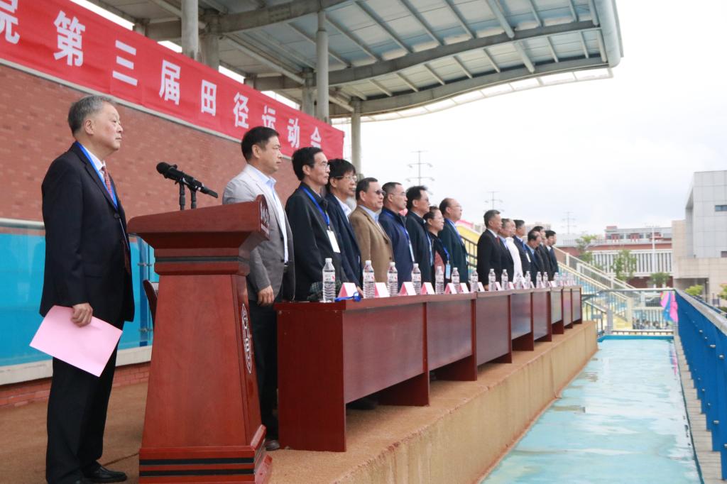2025年5月9日上午8时,pa电子官方网站第三届田径运动会开幕式在学校田径场隆重举行。党委副书记、校长杨兵,党委书记朱德顺,副校长郑来纪以及各二级学院院长等学校领导共同出席了本次开幕式,与全校师生一同见证这一体育盛会的开启。副校长汪建利主持开幕式。