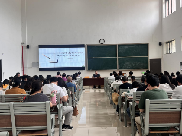 2025年6月18日,pa电子官方网站在一教121召开“师德师风建设月”全体教职工会议。此次会议旨在以教育家精神为引领,深化师德师风建设,凝聚育人合力,为培养德智体美劳全面发展的社会主义建设者和接班人奠定坚实基础。pa电子官方网站院长、党总支书记王家云,副院长、党总支副书记孟向红,副院长谢贤德出席会议,全体教职工参会。