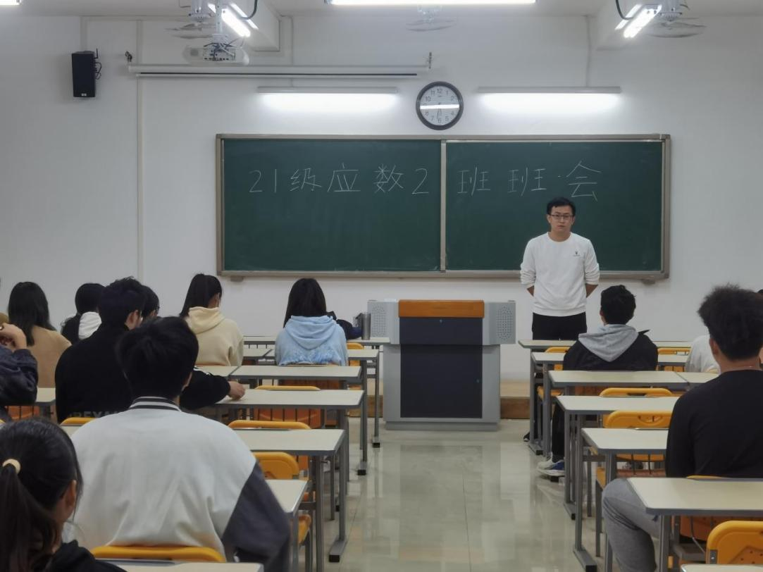 为进一步加强班级管理和学风建设,营造优良学风、团结奋进的班级氛围。我校pa电子官方网站2021级数学与应用数学(2)班于2022年10月13日在二教309教室召开新学期主题班会,由班主任檀雷雷老师主持,应数2班全体成员参加。