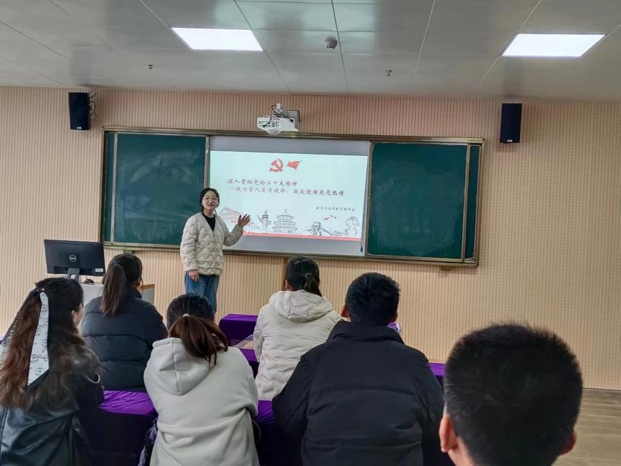 李姜悦老师围绕充分认识党的二十大重大意义、党的二十大主题和主要成果等多个方面进行了宣讲,引导教研室全体青年教师深刻学习贯彻党的二十大精神,强调要将党的二十大精神学深悟透,把思想统一到党的二十大精神上来,切实把学习成效转化成提高工作质量、服务意识的强大动力。所有教师都要以党的二十大精神为指引,坚持党的全面领导,践行“为党育人、为国育才”的初心使命,落实立德树人根本任务,为培养德智体美劳全面发展的社会主义建设者和接班人而努力奋斗。