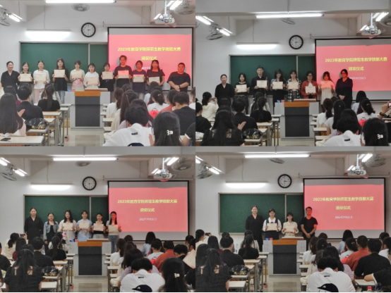 pa电子官方网站师范生教学技能大赛于2023年9月16日正式启动,共分为语文组、数学组、学前组和教具组进行比赛。经过激烈角逐,本次大赛共评选出一等奖20名,二等奖21名,三等奖22名,优秀奖28名,并选出语文组15名同学、数学组10名同学、学前组10名同学和教具组4个小组的同学进入校赛。