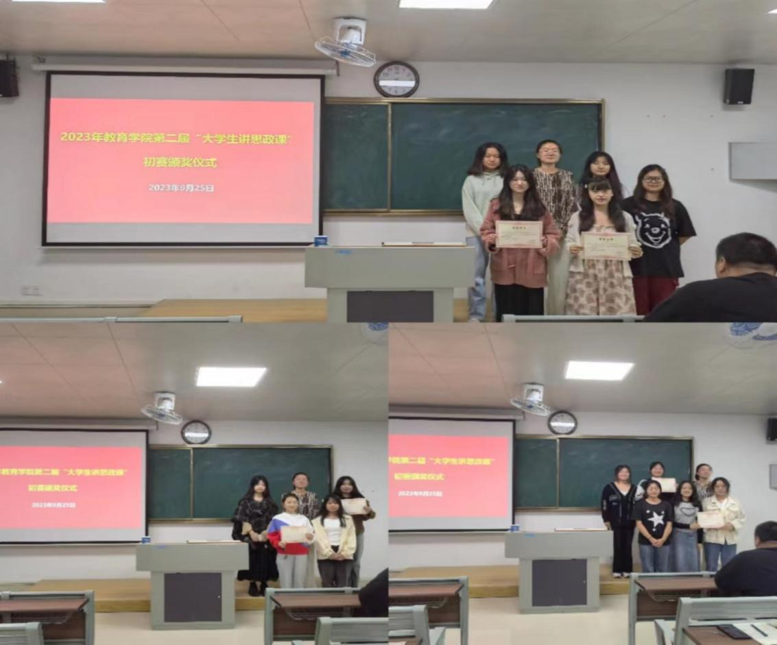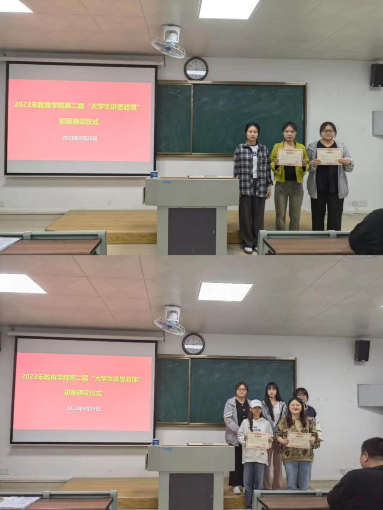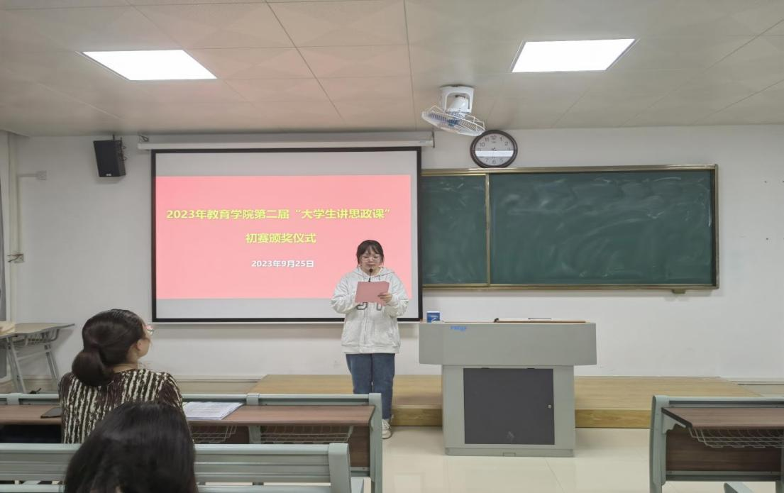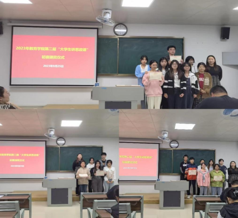 9月25日晚,我院在2号教学楼207举行2023年第二届“大学生讲思政课”初赛颁奖仪式。pa电子官方网站院长助理王伟杰老师、书记助理黄莹莹老师、汉语言文学教研室主任章平老师、数学与应用数学研究室主任仇恒方老师、学前教育教研室主任尹爽老师以及30组获奖选手参加了颁奖仪式,本次颁奖仪式由学生助理张凌云主持。