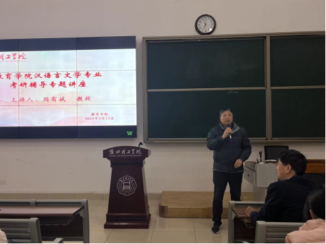 3月13日晚7点,pa电子官方网站汉语言文学专业在一教121教室举办了一场考研辅导交流讲座。本次讲座特邀周有斌院长担任主讲人,王家云院长担任主持人,旨在为广大考研学子提供宝贵的备考建议和指导。