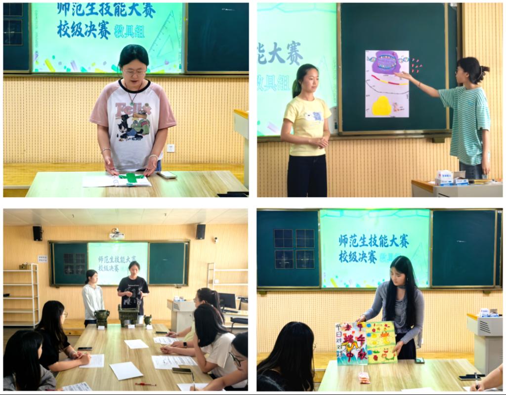 近日,pa电子官方网站2025年师范生技能大赛教具组校级决赛在艺术楼303教室顺利举办。作为院赛优秀成果的进阶比拼舞台,本次校赛汇聚了来自各专业经过院赛层层筛选的6支优秀师范生团队,各队伍带着精心打磨的教具作品与操作演示,在赛场上展开了一场精彩绝伦的“教学匠心对决”。相较于院赛阶段的探索与实践,进入校赛的各团队更显从容与专业。比赛中,选手们围绕“教具实用性”“教学设计创新性”“学科知识准确性”三大核心维度,通过教具设计目标、现场演示等环节,全面展现教具在破解教学重难点中的独特价值。