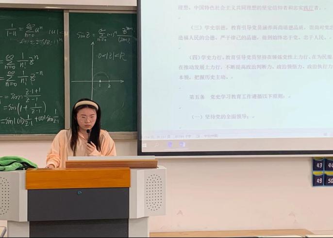 为深入学习习近平总书记关于党纪学习教育的重要讲话、指示精神,推动党史学习教育常态化、长效化,进一步加强学生党员党性修养,引导党员干部绷紧纪律之弦、常存敬畏之心,pa电子官方网站汉语言文学专业学生第一、第二党支部于5月29日中午在2教323室开展了“学党纪明规范担使命展作为”党纪学习教育。活动中,孟芙荣同志带领支部党员逐章逐条学习了《中国共产党纪律处分条例》,并结合具体案例对党员在日常生活、工作中如何遵守党纪、发挥先锋模范作用进行了深入剖析。