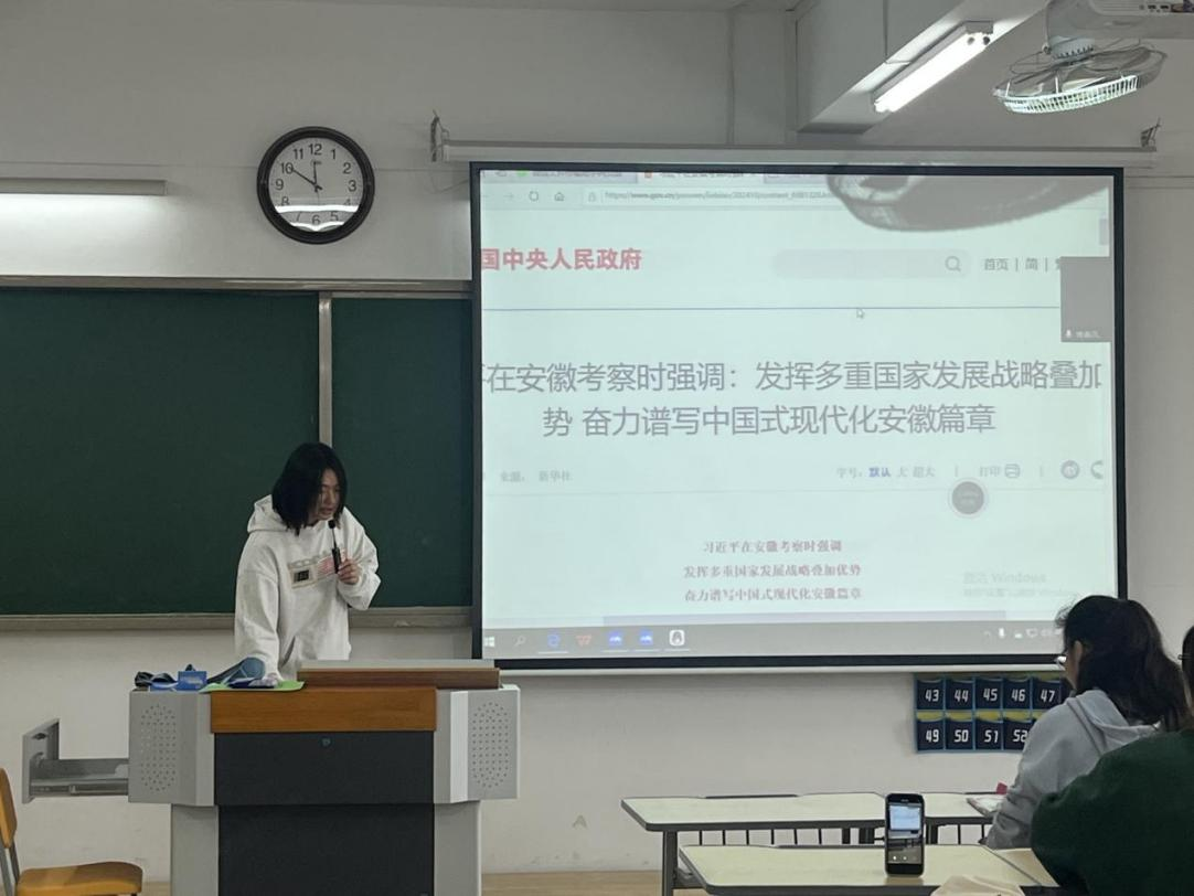 为深入推进党纪学习教育,加强党性教育,激发学生党员的爱国爱党情怀,深入领会习近平总书记作出的“发挥多重国家发展战略叠加优势,奋力谱写中国式现代化安徽篇章”重要指示精神,11月20日中午,pa电子官方网站汉语言文学第一、第二党支部在2号教学楼323室开展主题党课学习教育活动,在外实习学生党员线上参加了学习教育,本次活动分为集中学习和交流研讨两个阶段。
