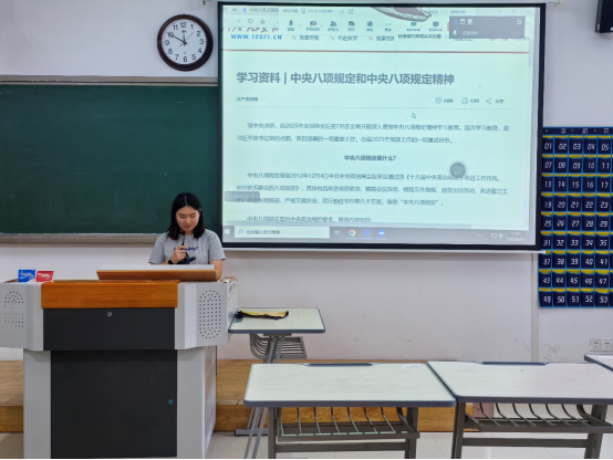 2025年6月11日,教育pa电子官方网站汉语言文学专业学生第一、第二党支部在二教306教室开展“中共中央八项规定精神”学习教育活动,活动由王涵同志主持,全体党员、发展对象参加。