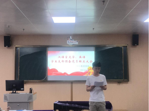 为进一步加强党员队伍建设,增强党员队伍生机与活力,pa电子官方网站汉语言文学与英语专业党支部于2022年6月9日下午在艺术楼318教室召开预备党员转正大会,本次支部大会由党支部负责人刘畅同志主持,支部全体正式党员参加会议,预备党员列席会议。大会严格按照预备党员转正程序进行,讨论关于严寒同志等14名预备党员是否能够按期转为正式党员。