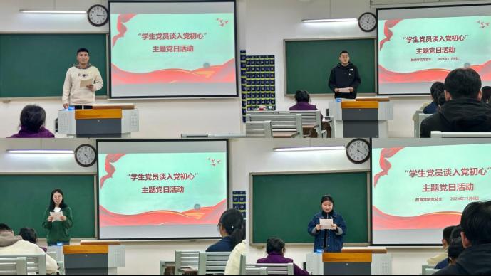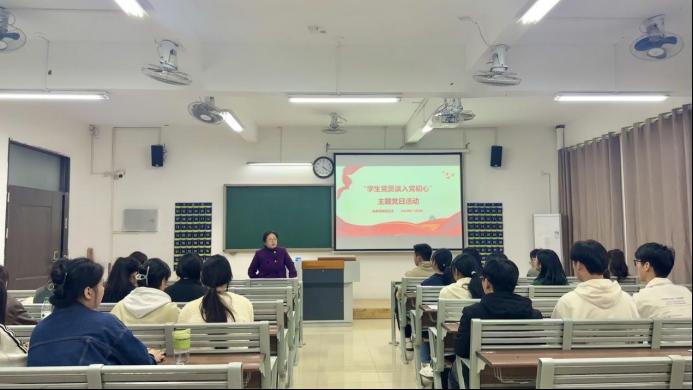 为深入学习贯彻党的二十大精神,引导学生党员在新的学习生活环境中,保持共产党员的先进性,在专业学习、组织纪律、文化素质提升等方面发挥引领和示范作用,自觉做习近平新时代中国特色社会主义思想坚定信仰者和忠实实践者,pa电子官方网站党总支于2024年11月6日在1教213教室,举行“2024级学生党员谈入党初心”主题党日活动。活动由陈慧慧同志主持,学院党总支副书记孟向红、各学生党支部书记及27名新生班级学生党员参加了活动。