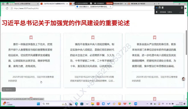 2025年5月30日,pa电子官方网站教工第一党支部采用线上会议的方式组织了一场意义深远的作风建设警示教育学习会,旨在进一步提升党员教师的政治素养和纪律意识,加强党支部的作风建设。
