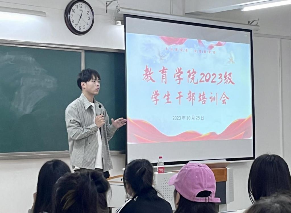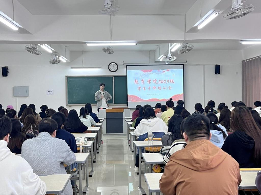 为进一步提高我院学生干部的综合素质和业务能力,强化学生干部服务意识、团队合作意识和凝聚力,扎实地推进我院学生管理工作。10月25日中午12点,在2号教学楼322室召开2023级班长、团支书培训会,会议由pa电子官方网站辅导员郭鸿鑫主持,2023级全体班长、团支书参加本次会议。