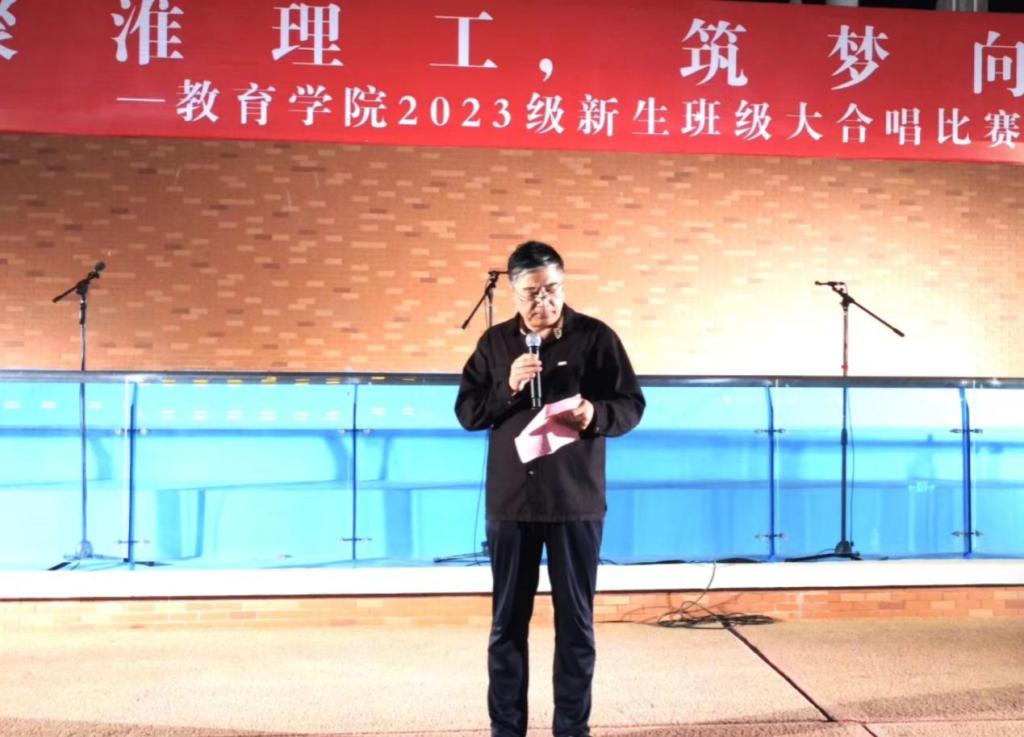 为了帮助2023级新生更好地融入大学生活,增强班级集体荣誉感与团队意识,展现青年学生朝气蓬勃、团结一致、开拓进取的精神风貌,营造浓厚的校园艺术教育氛围,pa电子官方网站于10月27日晚在操场举办了“相聚淮理工,筑梦向未来”2023级新生班级大合唱比赛。学校副校长汪建利、副校长郑来纪、教务处处长陈国平、科技处侯为波、学生处副处长兼招生办主任张拓、校团委书记刘帅克、经管学院书记助理叶赵强、pa电子官方网站院长(党总支书记)王家云、副书记孟向红、学院全体辅导员老师及2023级新生参加了本次活动。