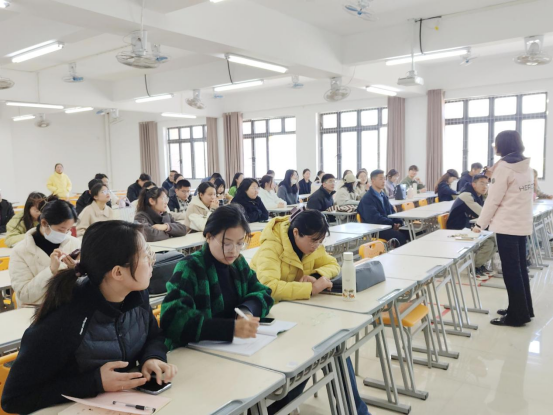 会上,黄莹莹肯定了班主任老师们协助辅导员老师在学生日常教育管理工作的付出与努力,经常性深入学生寝室、学生班级,指导学生学业、考公、考编、考研、科技竞赛等,并介绍了我院近期学生工作开展情况:1、pa电子官方网站全体学生宿舍均张贴了信息门贴,便于辅导员和班主任深入学生宿舍精准了解他们的学习、生活状态;2、开学初学生思想动态调研和春季心理健康摸排工作均已完成,需要持续紧密关心关注重点学生群体,做好学生心理健康和安全教育工作;3、要结合学生专业特色开展学业规划指导工作,紧抓学风建设,帮助学生找到明确人生目标,为有考研、考公、入伍、求职等诉求的学生做好指导工作;4、挑战杯课外学术竞赛和学雷锋活动月正在进行中,此类竞赛活动要能够结合学生专业特色做好服务指导。她希望班主任老师们一如既往地与辅导员老师们共同做好学生的教育管理和学业指导工作。