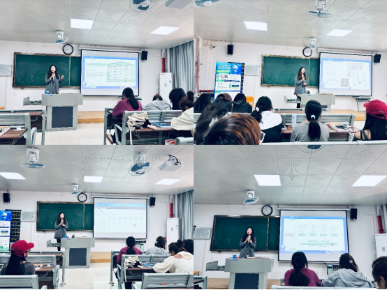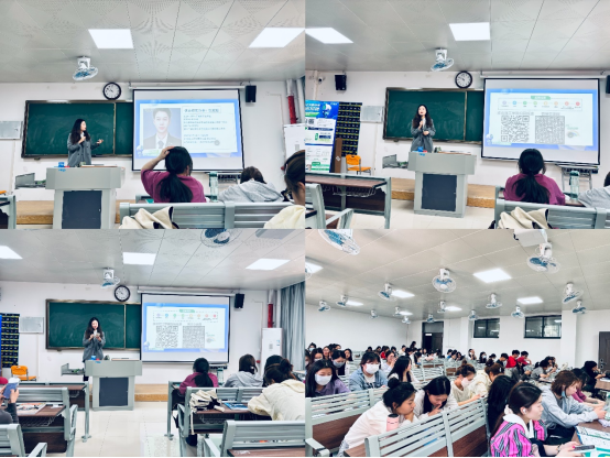 宣讲会上,李怡结合自身经历告诉同学们如何择业就业。她向同学们详细介绍了链家的概况、企业招聘计划、岗位职责、职业发展、薪资待遇和招聘政策等方面情况,并通过扫码互动小游戏、提问互动调动同学们的参与热情,现场解答了学生关于实习、就业等方面的疑惑。