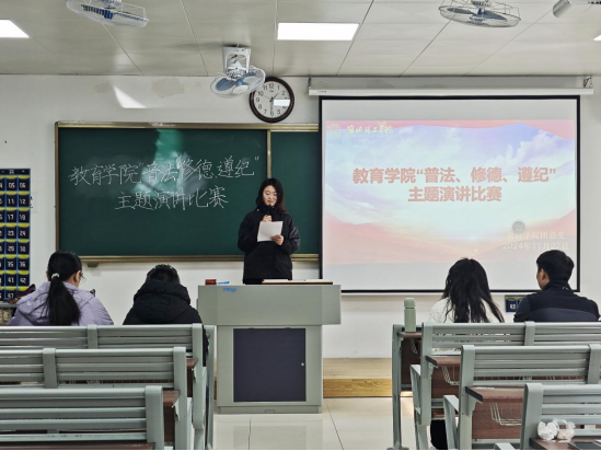 为落实学校“关于开展2024年‘普法、修德、遵纪,创建文明校园'专项活动的通知”精神,促进同学们更好地做到“学法懂法守法”,让立德树人理念更加深入人心,pa电子官方网站于11月27日在1号教学楼206、207教室举办“普法、修德、遵纪”主题演讲比赛。此次比赛由2024级班主任老师担任评委。