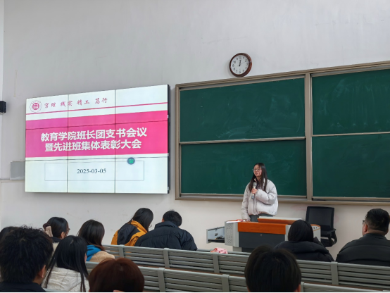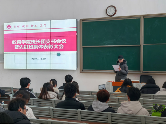 为促进班级管理交流,增强各班学生干部工作能力和激励全院班级努力营造良好班集体氛围。3月5日中午,pa电子官方网站在一号教学楼121教室开展了“班长、团支书会议暨先进班集体表彰大会”。会议由学院团总支副书记许海涛主持,分管副书记孟向红、书记助理黄莹莹、24级全体辅导员以及各班班长、团支书参加了会议。