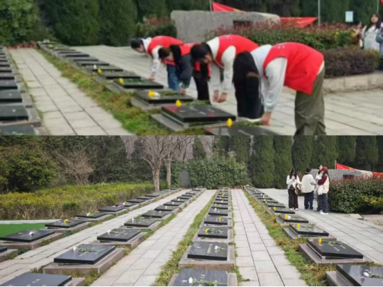 同学们整齐列队,向长眠在此的烈士们鞠躬默哀,寄托哀思。随后,同学们手捧菊花,缓缓走向烈士墓碑,轻轻献上手中的鲜花,一朵朵盛开的菊花,象征着同学们对烈士的敬仰与追思。