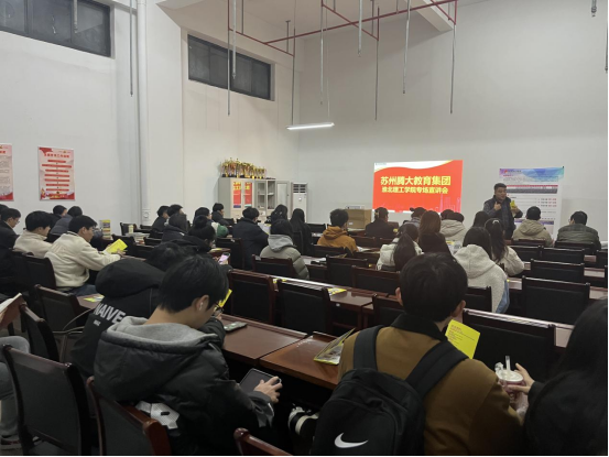 12月13日下午,苏州腾大教育集团在艺术楼102教室举办了专场宣讲会,学院2025届毕业生应邀参加本次宣讲会。