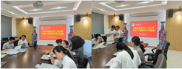 参与此次教材检查工作的各位教师都非常认真负责,仔细地检查每一本教材。从检查情况看,各教研室基本能按照学院要求开展了教材选用审核工作,选用的教材符合党和国家的方针政策,符合学校人才培养方案和课程体系改革的要求。学院今后将进一步督促各教研室严格按照相关文件要求,坚持正确的政治方向和价值导向,持续规范教材的选用、使用和管理工作,确保高质量、高水平的教材进入课堂。