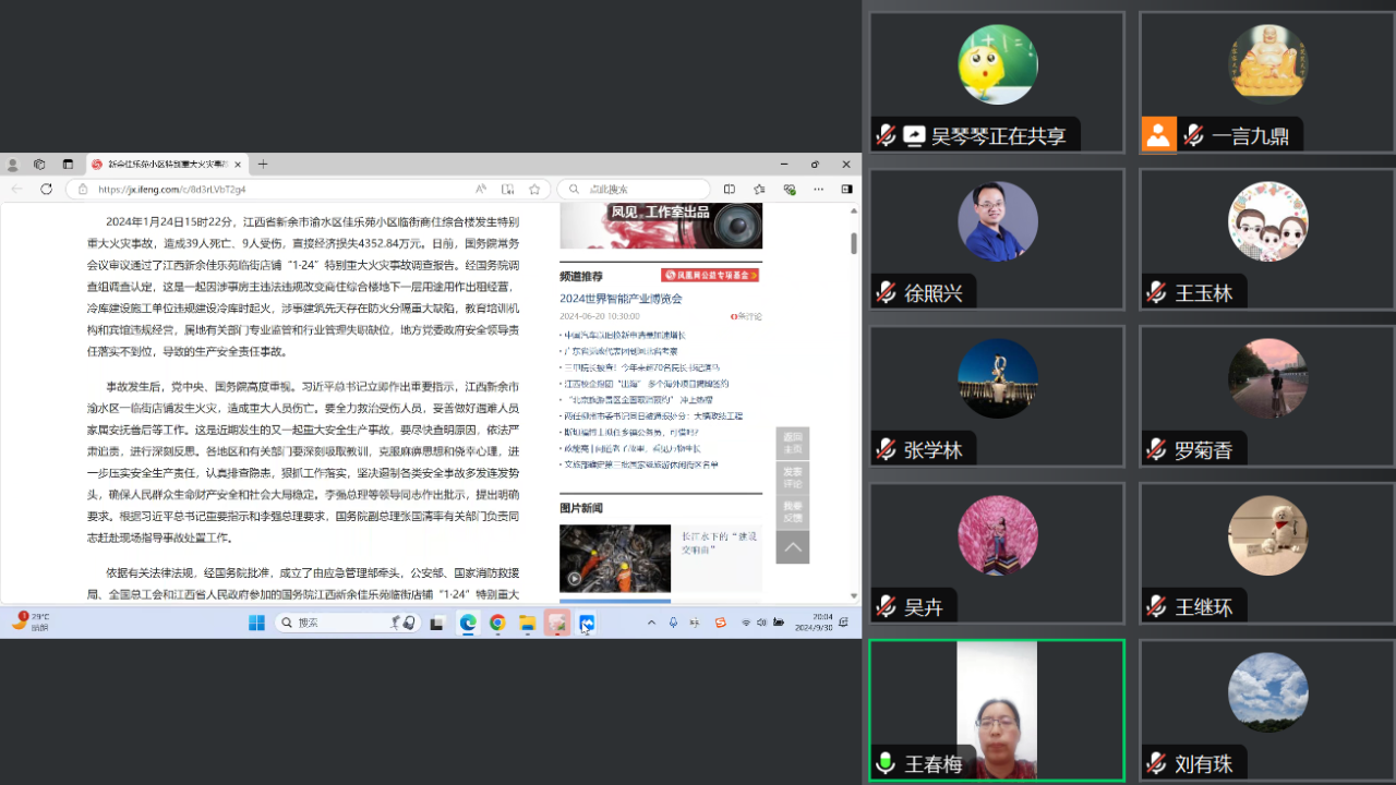 【bat365中文官方网站讯】为更好的学习传达新余1.24特别重大火灾事故问题整改会议的精神,进一步提升学院全体教职工的安全意识,有效预防安全事故的发生。2024年9月30日,bat365线上召开了安全教育专题会议。会议由学院党总支书记王春梅支持。