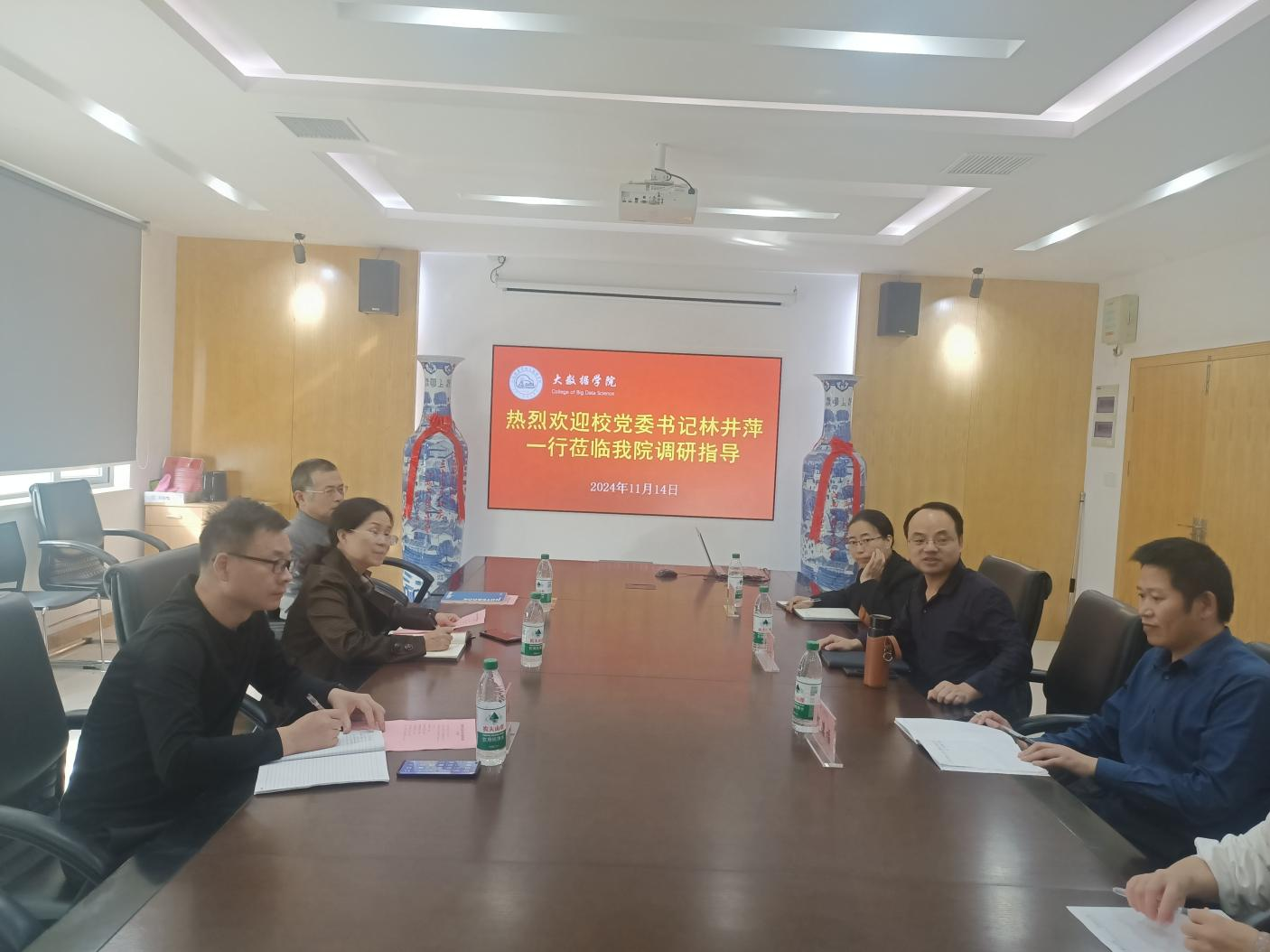 【bat365中文官方网站讯】2024年11月14日下午,学校党委书记林井萍在校长助理李沛武、党政办陈少峰老师的陪同下莅临bat365进行调研指导。学院领导班子成员、教研室主任、部分专业教师参加调研座谈会。