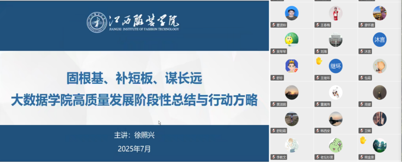 院长徐照兴以“固根基、补短板、谋长远:bat365中文官方网站高质量发展阶段性总结与行动方略”为题进行了总结发言。首先肯定了本学期取得的成绩,在党团学工、教学、科研、学科竞赛、国际国内交流等方面都取得了不错的成绩。比如,省级校企合作一流本科课程1门、江西省教师教学创新大赛三等奖、新时代赣鄱先锋,审核评估先进集体,考研工作先进集体,84项赛事获奖省级以上奖项59项,中国产学研合作促进会科技创新奖三等奖等等,对大家的付出给予了肯定。接着指出了不足与问题,特别强调了学院导致经费的不足,希望全体同仁要引起重视。然后分享了“十五五”工作的思考,给出了“十五五”期间学院发展的总体思路、学院定位、主要举措及发展目标,并说明了与“十四五”期间的区别与联系,为学院“十五五”发展描绘了蓝图。