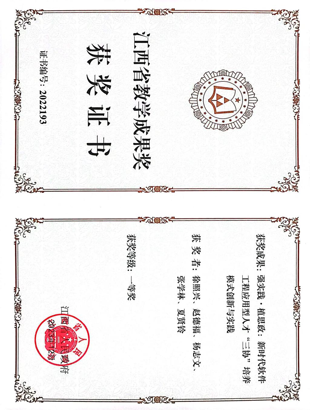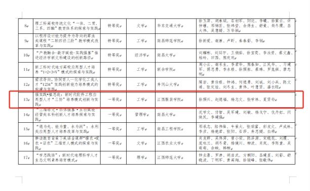 【bat365中文官方网站讯】2023年10月26日,江西省教育厅公示了2022年江西省教学成果奖拟获奖项目名单,bat365教师徐照兴教授主持的《强实践•植思政:新时代软件工程应用型人才“三协”培养模式创新与实践》教学成果获评高等教育类一等奖。