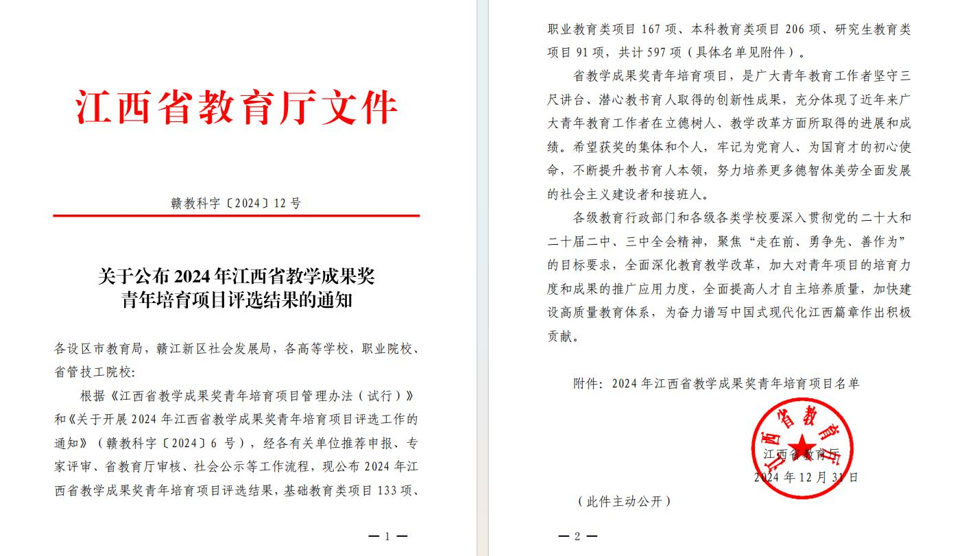 喜报||bat365荣获江西省教学成果奖青年培育项目1项