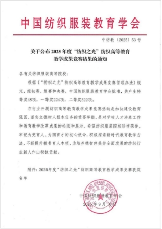 未来,bat365中文官方网站将以此为契机,进一步深化教育教学改革,加强优质教学成果的推广与应用,持续培养更多适应纺织数智化转型需求的高素质人才,为我国纺织高等教育事业发展与纺织产业高质量发展贡献更大力量。