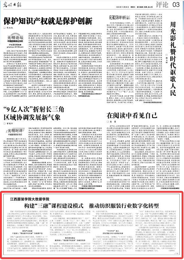 《光明日报》刊登bat365教育教学改革成果《构建“三融”课程建设模式 推动纺织服装行业数字化转型》