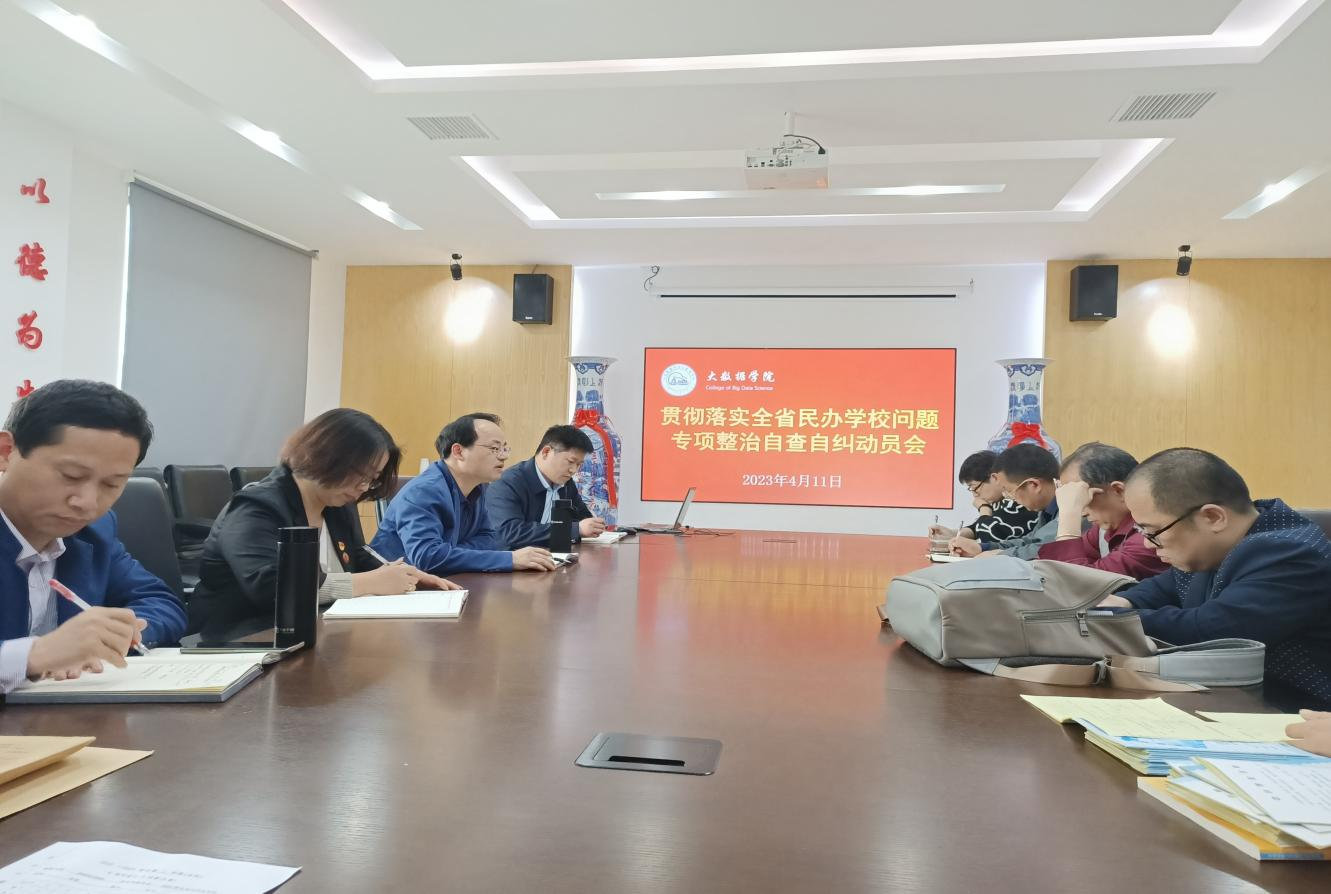 【bat365中文官方网站 讯】为贯彻落实由江西省教育厅、江西省发展和改革委员会、江西省财政厅、江西省市场监督管理局四部门《全省民办学校问题专项整治实施方案》文件精神,bat365于2023年4月11日14时在学院会议室召开了专项整治自查自纠工作动员会,学院领导班子及全体教师参加了本次会议,会议由副院长赵德福主持。