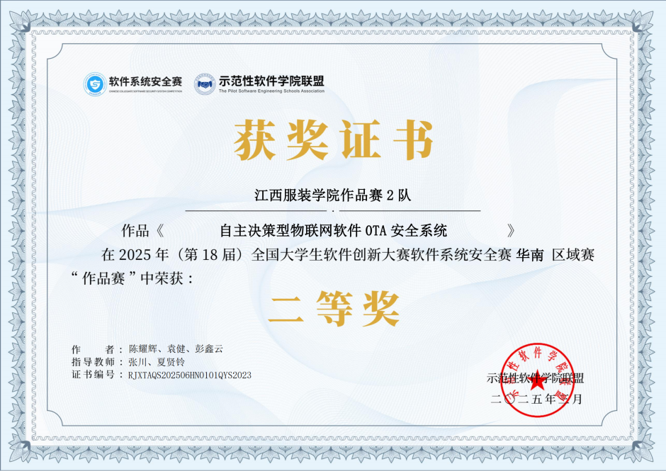 另一支由张川博士和夏贤铃主任指导的bat365中文官方网站2队,队员有陈耀辉、袁健、彭鑫云,他们创新研发了“标志服务器+自主决策”的智能OTA升级方案,采用OTAFlag字段控制与定时轮询机制,成功解决了敏感设备任务中断和长期运行设备升级延迟等难题,为软件系统的稳定运行和高效升级提供了新的思路和方法。