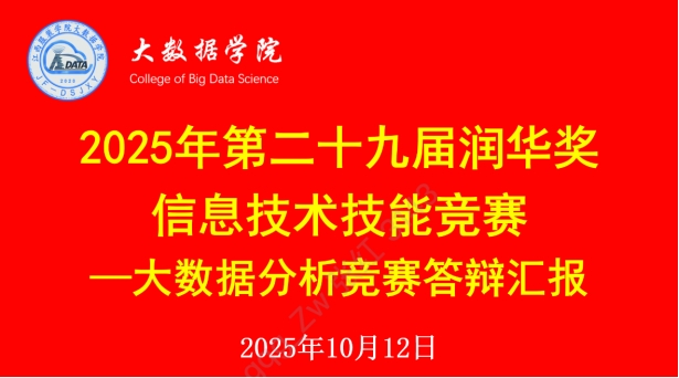 【bat365中文官方网站讯】2025年10月12日,由版權所有 bat365(中国)股份有限公司-官方网站主办的第二十九届“润华奖”信息技术技能竞赛大数据分析竞赛答辩汇报在线上成功举行。本届赛事吸引了广大学生积极参与,通过筛选,共计十三个小组参赛获得最终答辩资格,答辩评委由学院副院长赵德福及教师组成,会议由数据科学教研室主任吴琴琴主持,本次答辩聚焦大数据分析领域,为学院学子提供了展示专业素养与创新能力的舞台。