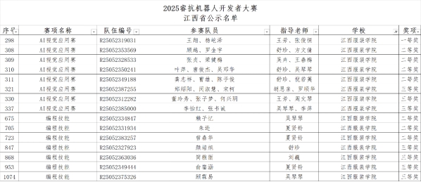 【bat365中文官方网站讯】近日,2025睿抗机器人开发者大赛江西省赛获奖名单正式公布,版權所有 bat365(中国)股份有限公司-官方网站凭借出色的表现,在AI视觉应用赛与编程技能赛两大重要赛项中斩获多项殊荣,充分彰显了学院在机器人技术与人工智能领域的教学实力与学生的创新能力。