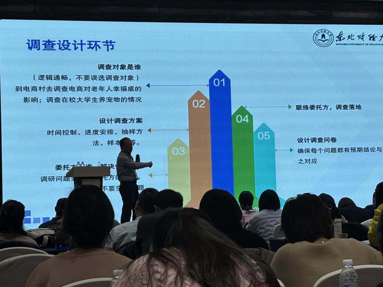 午餐和休息过后,下午的培训继续进行。零点有数行业副总经理赵娅女士以“新消费革命大势能之企业要什么样的市场研究”为主题,从企业的视角出发,深入探讨了新消费时代企业市场研究的需求和特点。赵女士结合丰富的行业经验,分享了企业在市场研究方面的最新趋势和实践案例,为指导老师如何引导学生更好地结合市场需求开展调研工作提供了新的思路和方向。中场休息后,西南交通大学王璐教授进行了“全国大学生市场调查与分析竞赛优秀获奖作品剖析”的主题讲座。王教授选取了多届大赛中的优秀获奖作品,从研究选题、方案设计、数据收集与分析、报告撰写等多个方面进行了详细剖析,总结了这些作品的成功经验和亮点之处。她鼓励各位老师要引导学生关注社会热点问题,选择具有现实意义和创新性的研究课题,注重调研方法的科学性和数据分析的严谨性。