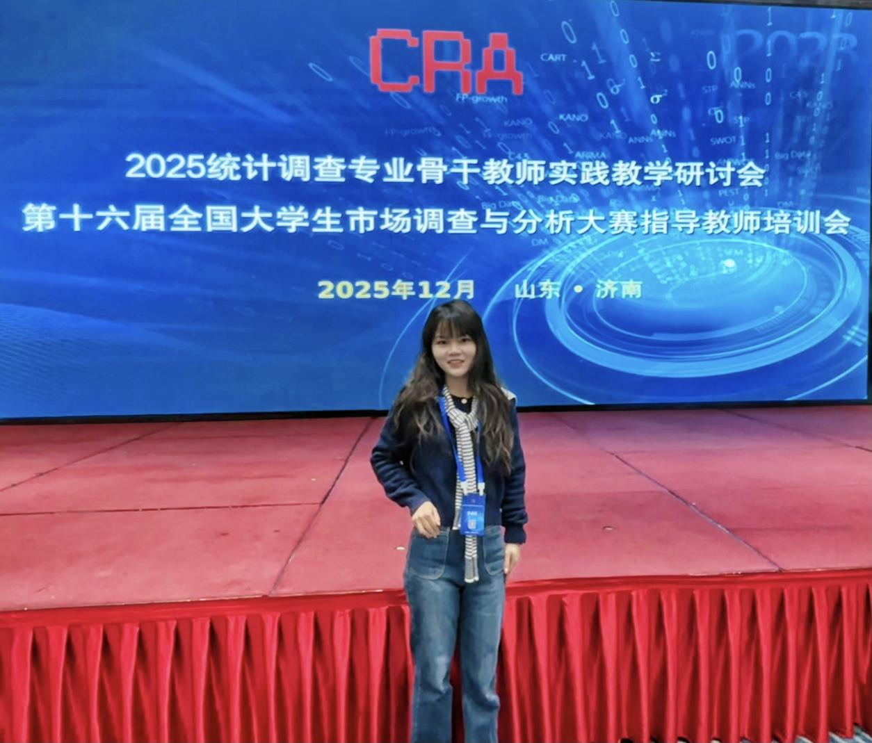 【bat365中文官方网站讯】为进一步提升bat365教师在市场调研领域的指导能力,助力学生在第十六届全国大学生市场调查与分析大赛中取得优异成绩,2025年12月20日至12月21日,bat365选派张红教师前往济南,参加由正大集团主办、全国大学生市场调查与分析大赛组委会协办的“正大杯市场调研大赛指导老师培训会”。此次培训会汇聚了全国多所高校的市场调研赛事指导教师,通过专题讲座、案例剖析、互动交流等形式,为参会教师提供了丰富的学术盛宴。