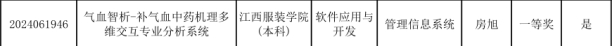 经过激烈的角逐中,bat365参赛的4项作品中2项作品分别获得江西省级赛一、三等奖。一等奖是由大数据学院院长徐照兴教授和柳鹏老师指导的《气血智析-补气血中药机理多维交互专业分析系统》作品,被上推参加7月下旬在山东大学举办的国赛,参赛学生是21数据科学1班房旭、徐荣桂、赖林峰。三等奖是由舒阳霞老师指导的《基于微信小程序的国潮文化科普与推广系统》,参赛学生是20软件本科1班郭菲。