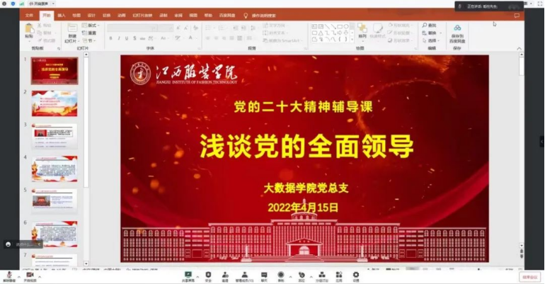 为进一步学习贯彻党的二十大精神,坚定不移以党的创新理论成果武装头脑、指导实践、推进工作。4月15日晚7点,bat365中文官方网站学习党的二十大精神专题培训班第四讲由学院副院长张学林进行授课,bat365中文官方网站全体党员、预备党员以及34期入党积极分子参加此次培训。