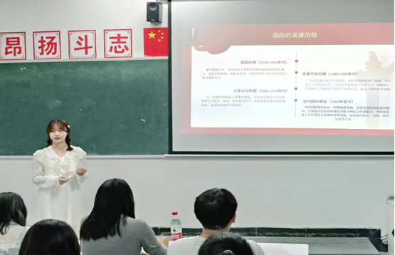 郑靖同学的演讲名称为《居安思危,心系国防》,她表示:青春,是同学们最宝贵的财富。而国家,是同学们生命中最伟大的存在。将这两者相结合,让同学们的青春成为国家建设和国防事业的火炬,成为推动国家进步的力量源泉。